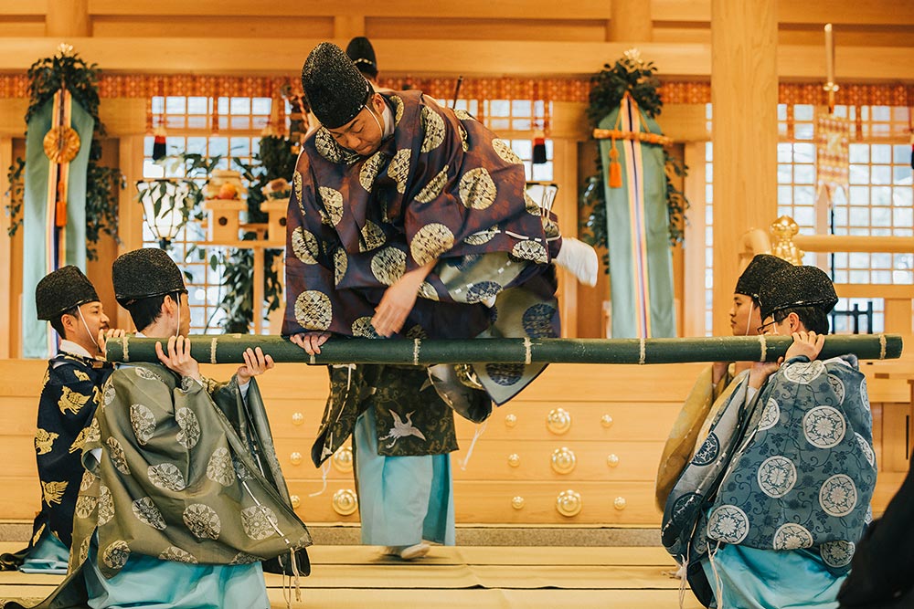 田作祭は、社家の祖先神でもある国龍神(年祢神)の婚儀を表現し、そのことで五穀豊穣を願う内容となっています。